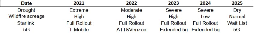 I t sure looks to me like my area of North Idaho is fully bombarded by Starlink’s benign radiation, as are the birds and creatures of the woods. And that map above was from four years ago. I wonder why we didn’t have many bees in the last couple of years? From the previous table, Starlink coverage nationally has been around since 2022 and is now over-subscribed in my area.
