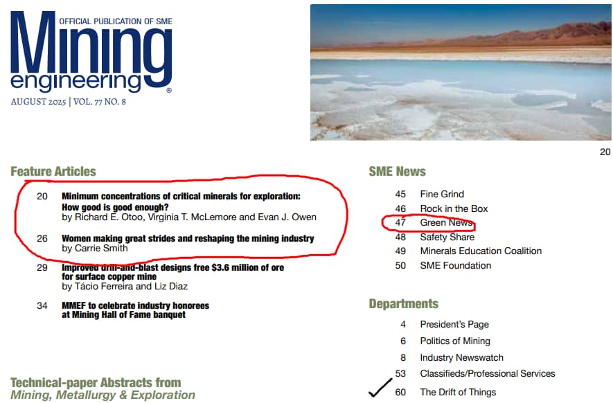 The cover of August 2025 issue of Mining Engineering seems to verify the historical trend: